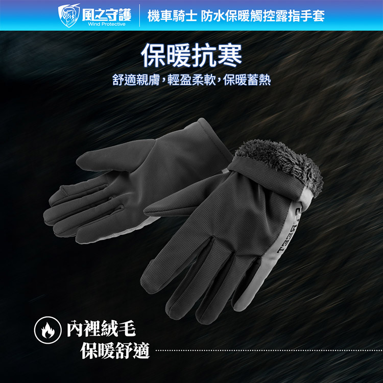 【風之守護】機車騎士 防水保暖觸控露指手套