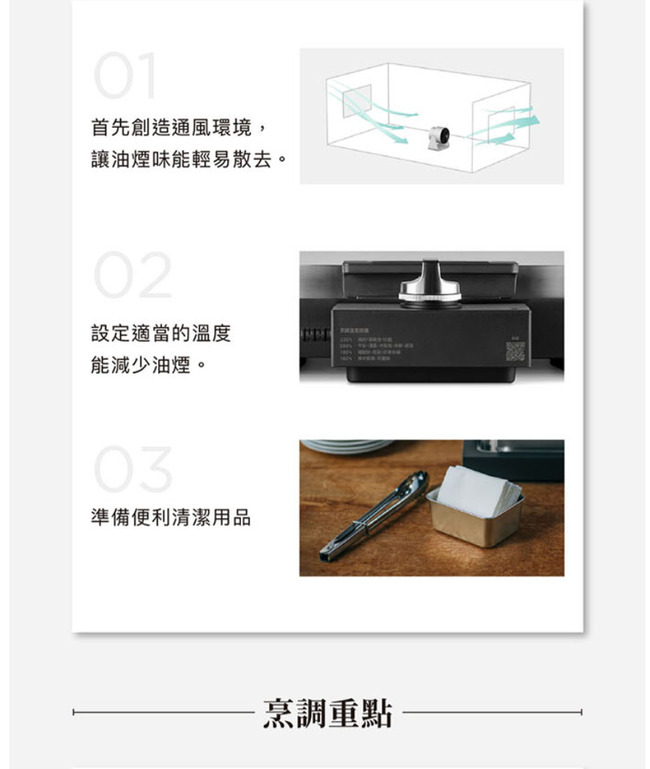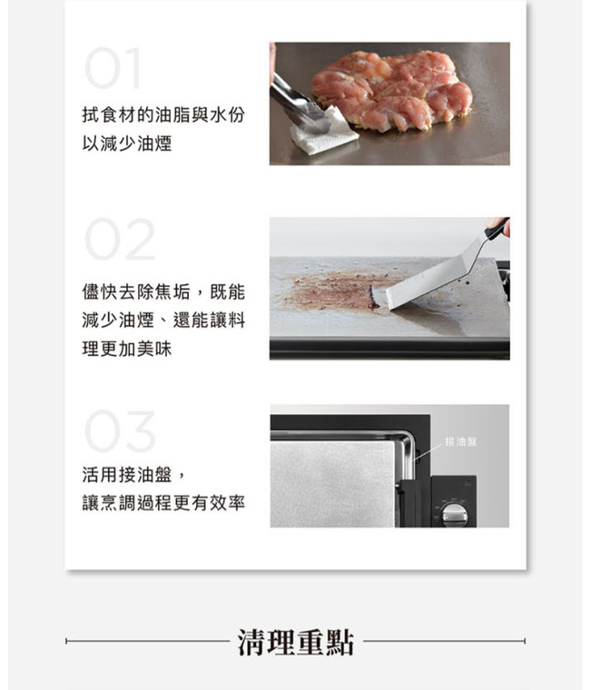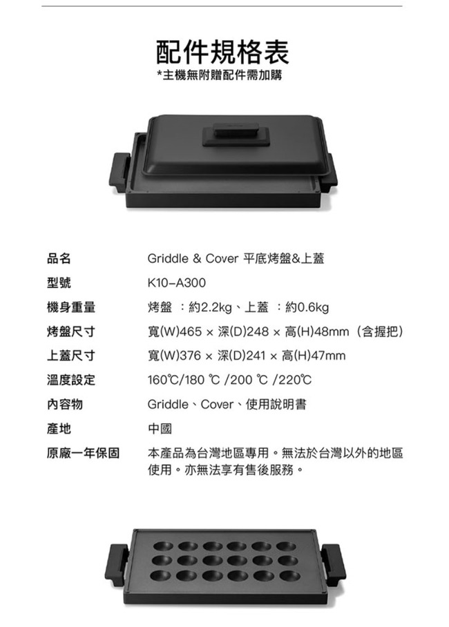 内容物:機身、包覆式烤盤、接油盤、煎鏟、說明書