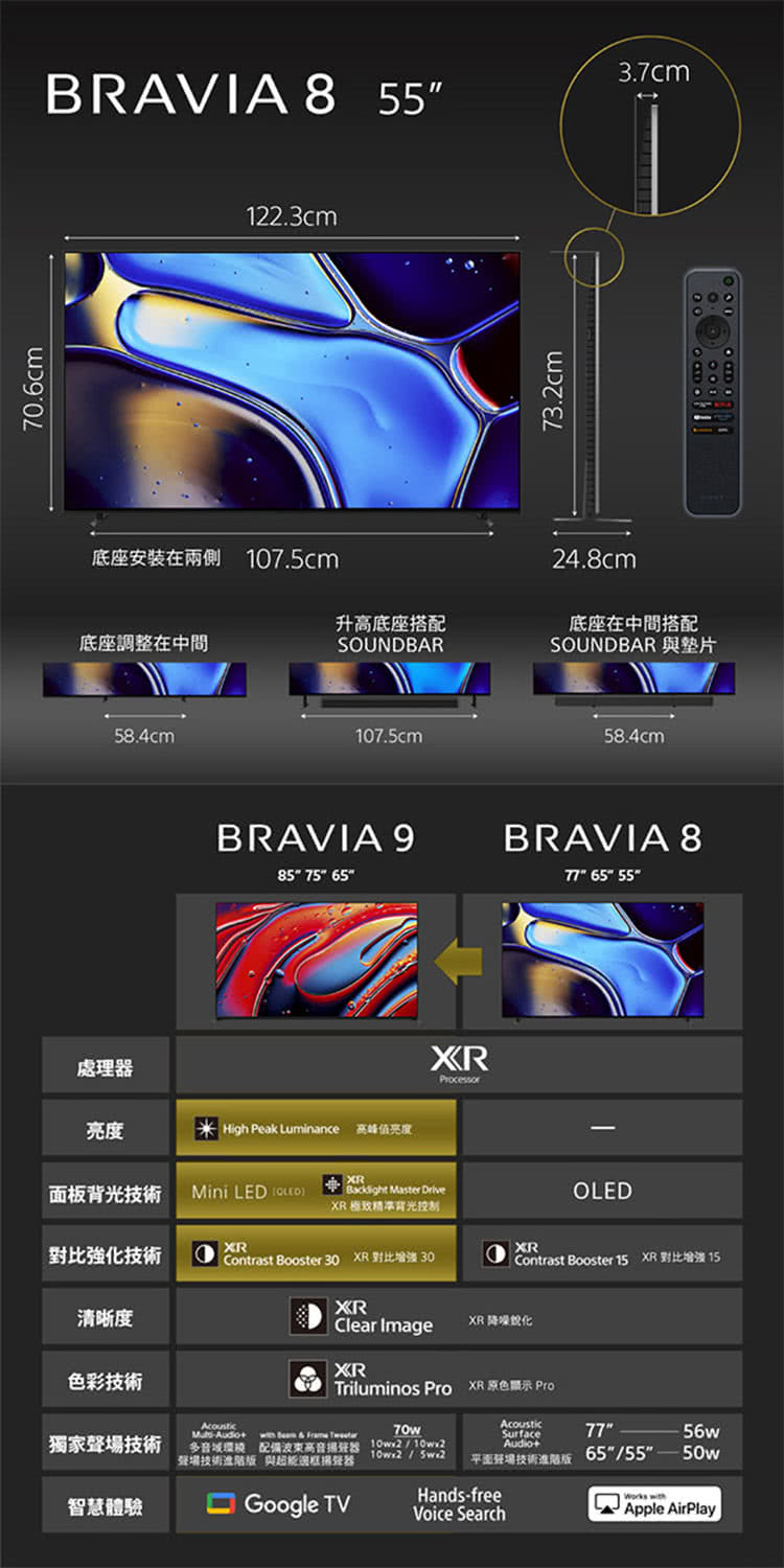 SONY 索尼 55吋 OLED 4K HDR Google TV顯示器 Y-55XR80 含基本安裝 偏遠地區費用另計