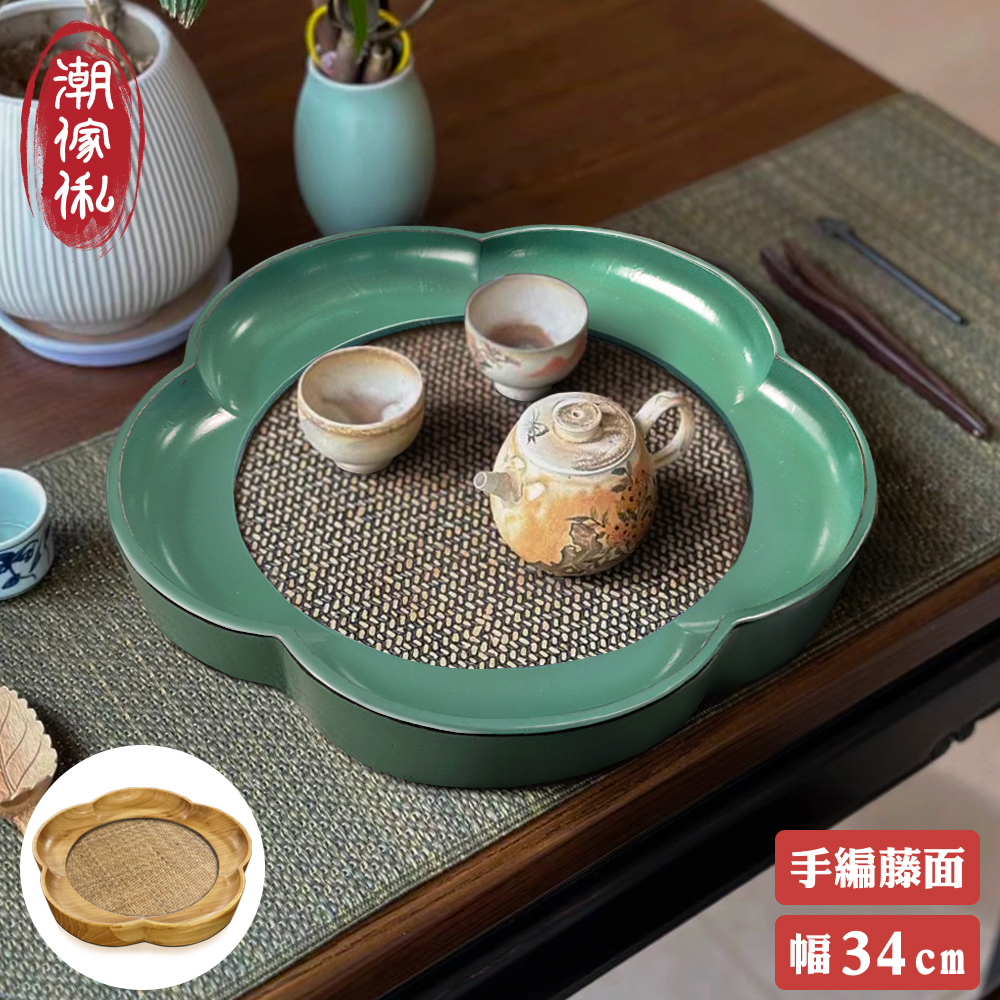 潮傢俬】小築裏手編藤面梅花茶盤-幅34cm-2色可選