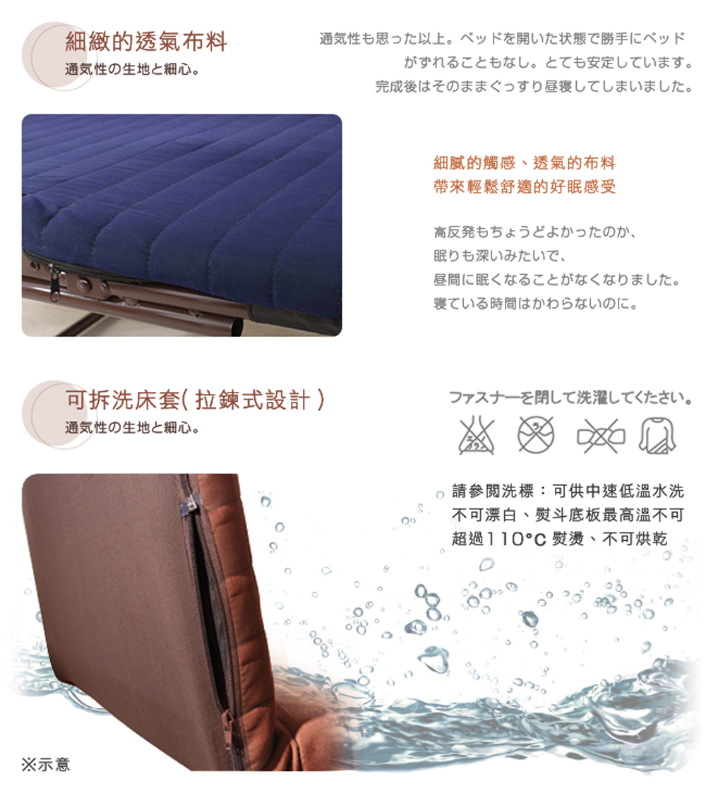 ◆ 可拆洗拉鍊式床套,清潔容易