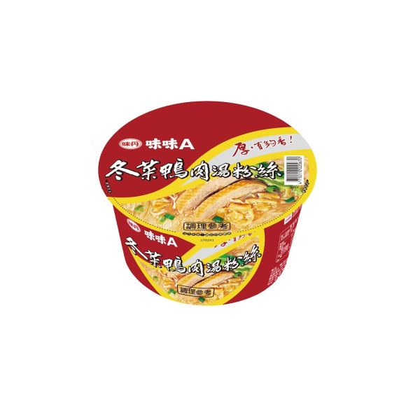 | 內容物(成分) | 原料: 粉絲:馬鈴薯澱粉、綠豆澱粉 調味粉包:食鹽、味精、脫水鴨肉[含食鹽、味精、麥芽糊精、抗氧化劑(混合濃縮生育醇)]、大蒜香料(含玉米澱粉、食鹽)、脫水芹菜(含葡萄糖)、調味劑(5’-次黃嘌呤核苷磷酸二鈉、5’-鳥嘌呤核苷磷酸二鈉)、白胡椒粉、焦糖色素、琥珀酸二鈉、八角粉。 調味油包:冬菜[高麗菜、食鹽、香辛料(肉桂、花椒、八角、小茴、丁香)、味精]、鴨油、豬油(台灣)、棕櫚油、抗氧化劑(混合濃縮生育醇)。 |
