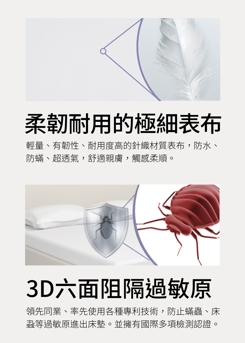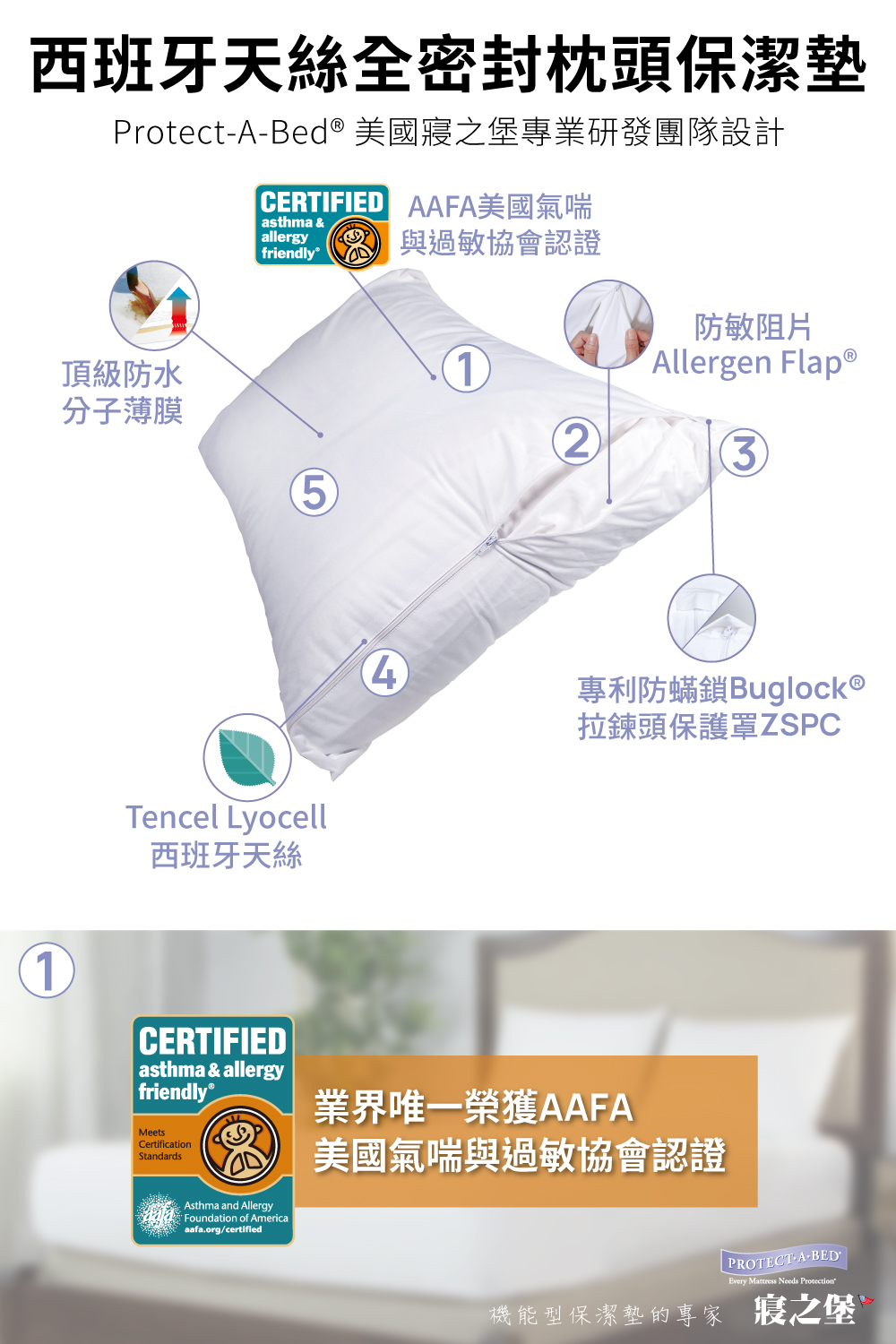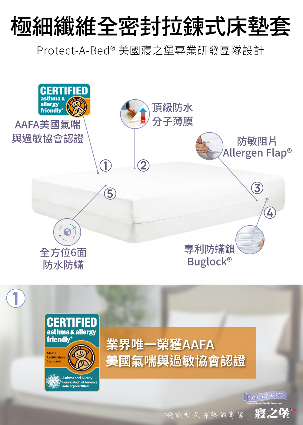 美國AAFA氣喘與過敏協會認證 物理性長效防水防蟎、超薄透氣 預防塵蟎等過敏原在床枕內孳生