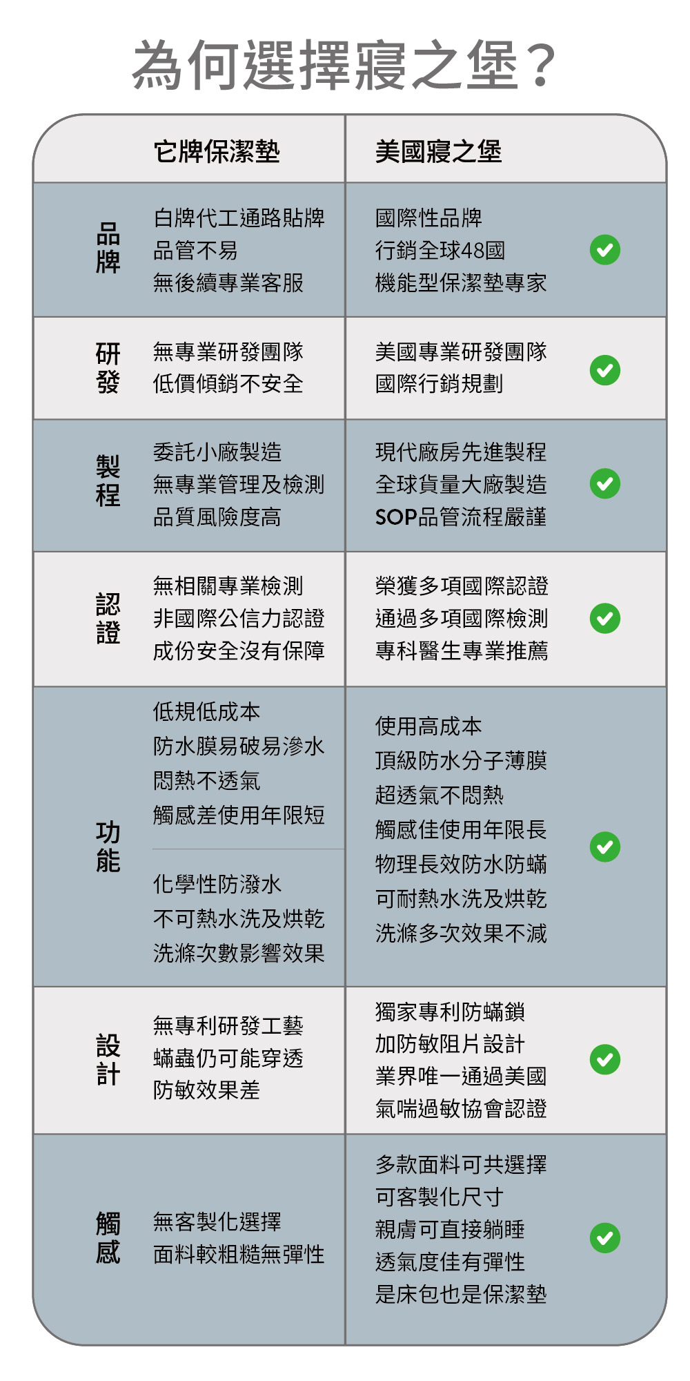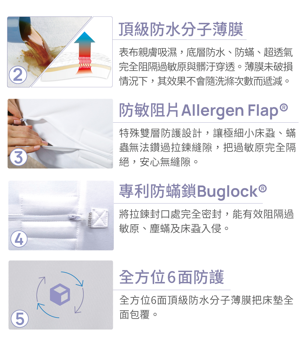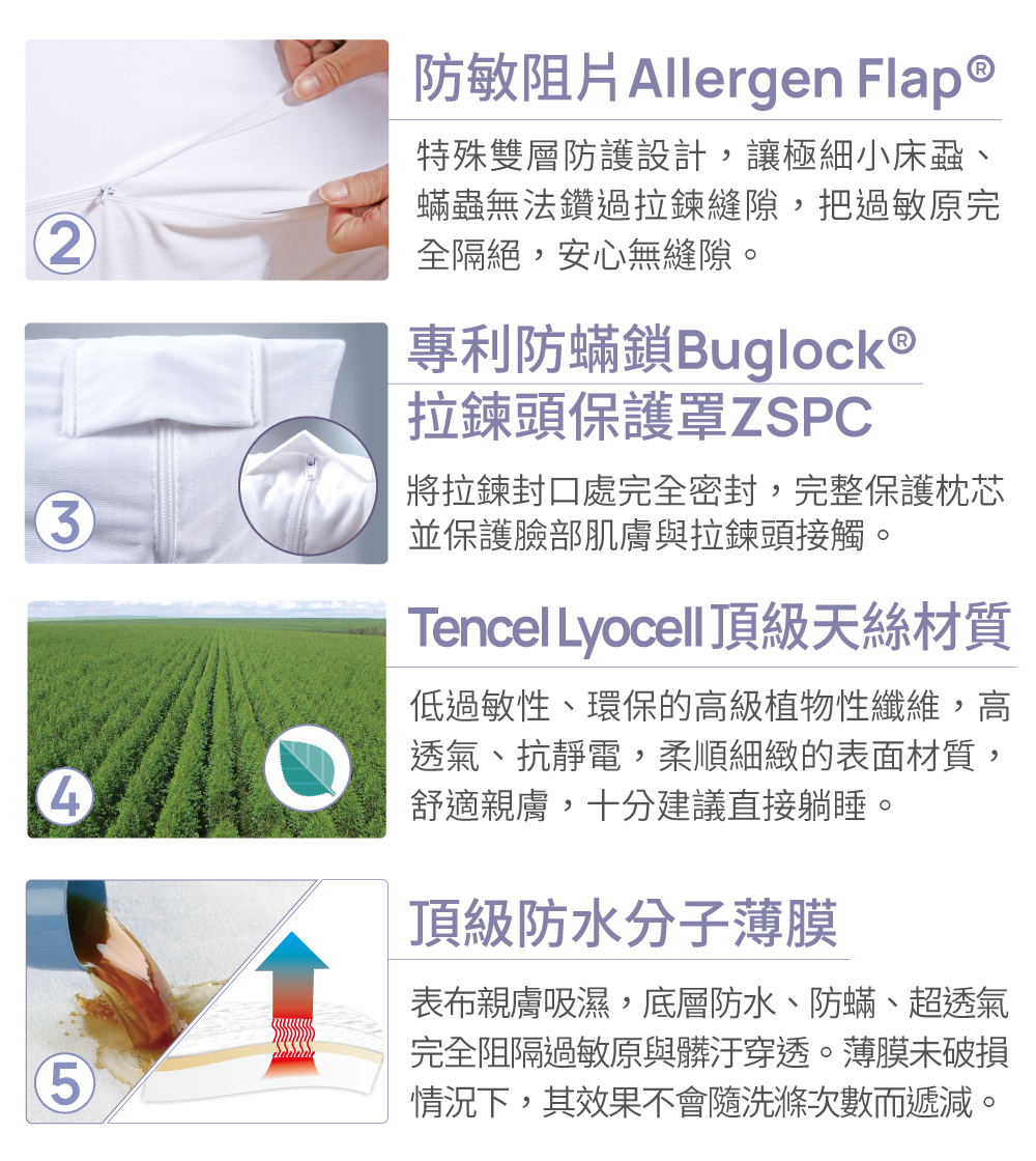美國AAFA氣喘與過敏協會認證 物理性長效防水防蟎、超薄透氣 預防塵蟎等過敏原在床枕內孳生