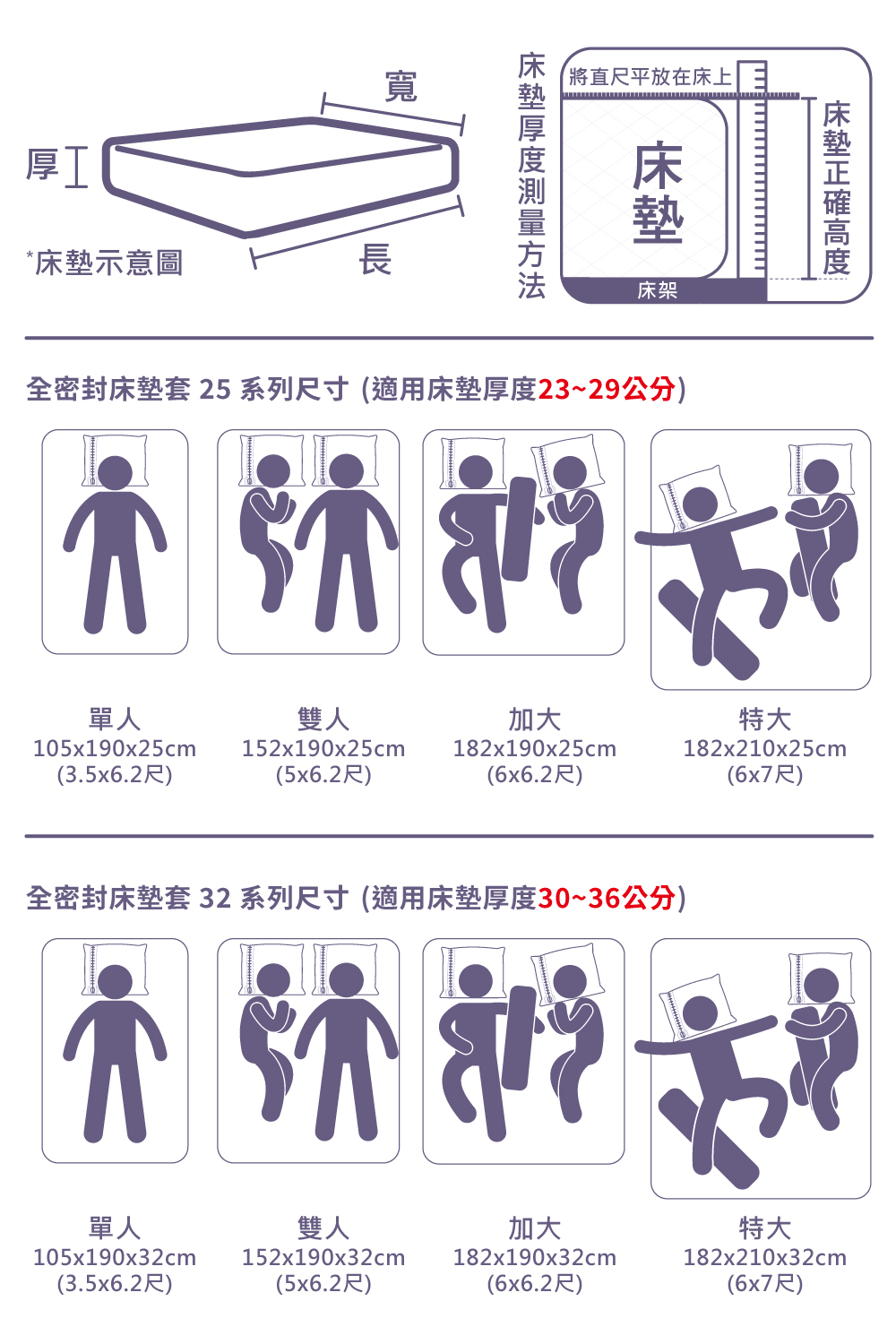 寢之堡】特大32床墊套+枕頭防水防蟎保潔墊組(6x7尺)(高30~36cm)(西班牙天絲全密封AAFA組)