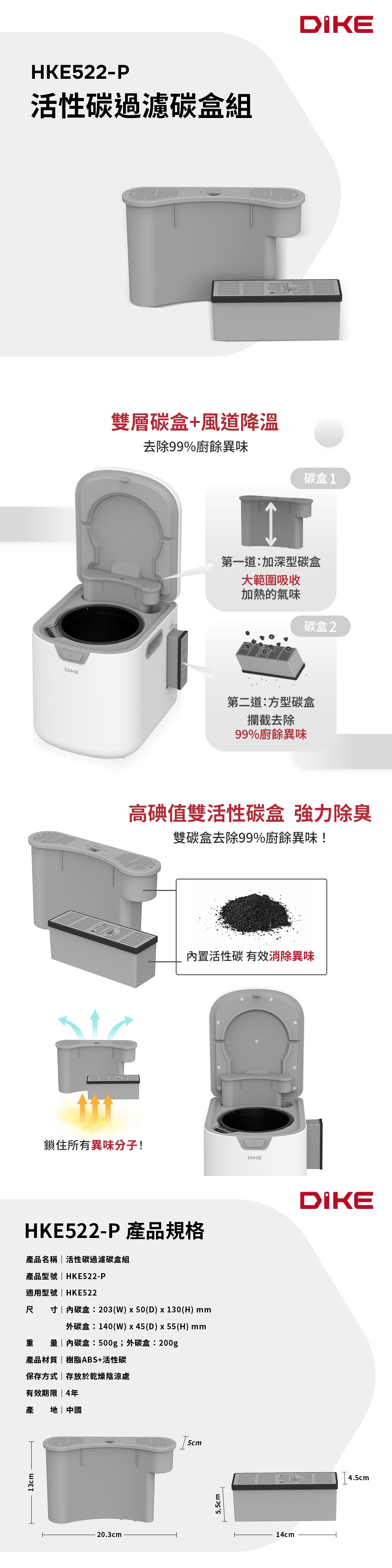 產品名稱|活性碳過濾碳盒組 產品型號|HKE522-P 適用型號|HKE522