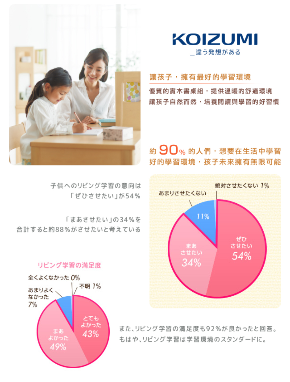 1965 年,KOIZUMI 照明事業正式開始。歷經半個世紀的改進與研發,開發出適合休閒/念書/專注的三種光色模式。腦科學家・澤口俊之先生推薦,多功能的 KOIZUMI LED 智慧護眼燈具,對於保護眼睛、孩子的大腦成長發育,有極大的幫助。
