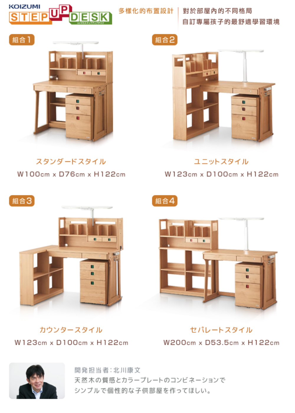 四種組合模式,在任何地方、不同的年齡階段,都能使用的「成長學習桌」。寬敞的桌面、多樣細膩的收納設計,為孩子量身訂做的學習桌,能在起居/用餐室/兒童房/書房使用。當孩子還小時,父母可在起居/客廳的地方,陪同小孩一起學習,就近照顧。當孩子成長時,兒童房/書房,個人的生活空間,培養獨立自主。在最合適的地方,提供最舒適的學習環境。