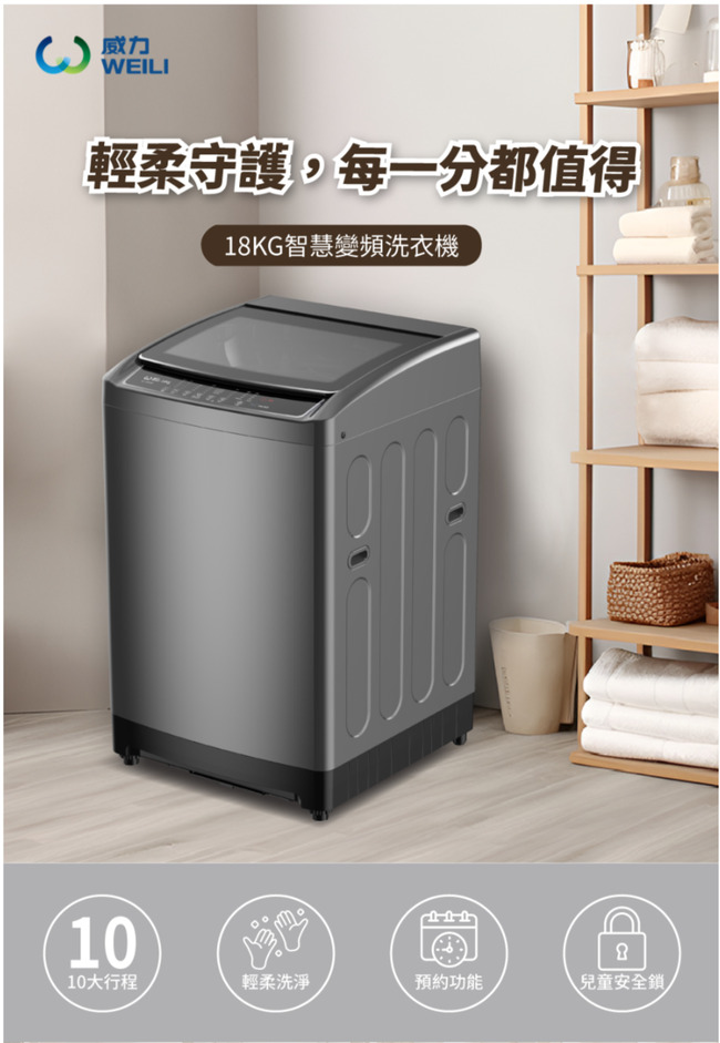 WEILI 威力】18KG 直立式變頻洗衣機 鈦金灰(WT-18FDSG )
