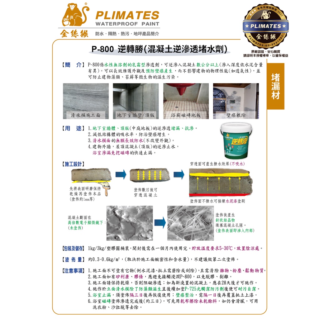 用於混凝土結構逆滲透堵水的化學藥劑。