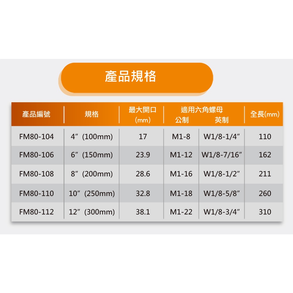 台灣製造4吋輕量化大開口活動扳手