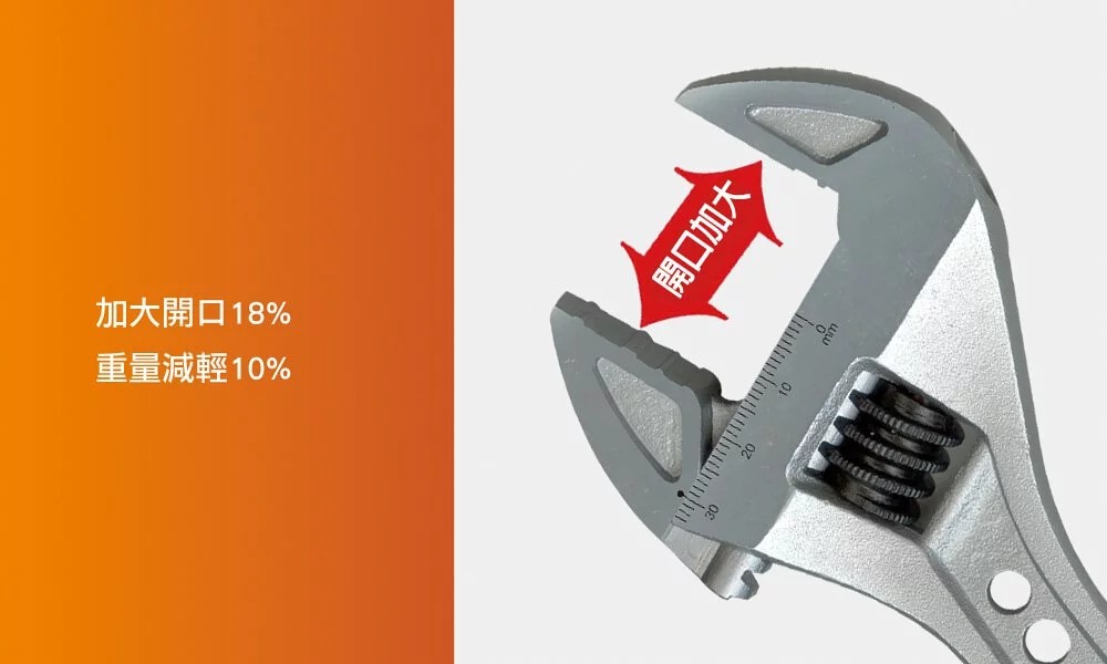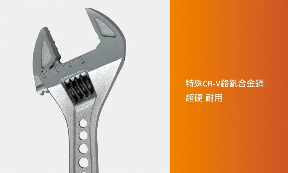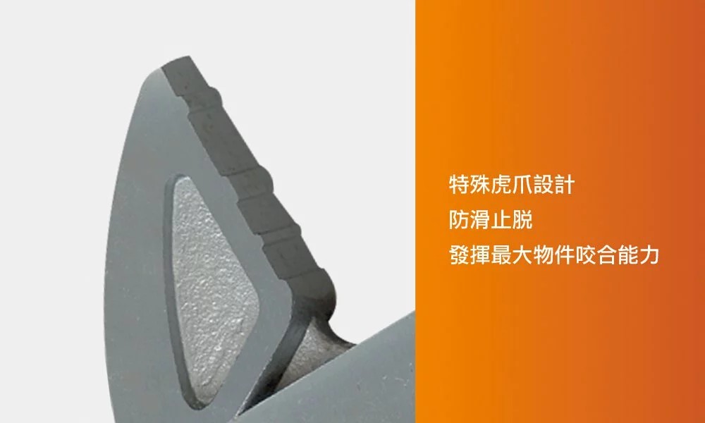 專業級鉻釩鋼材質加大開口18%,重量減輕10%特殊虎爪設計,防滑止脫