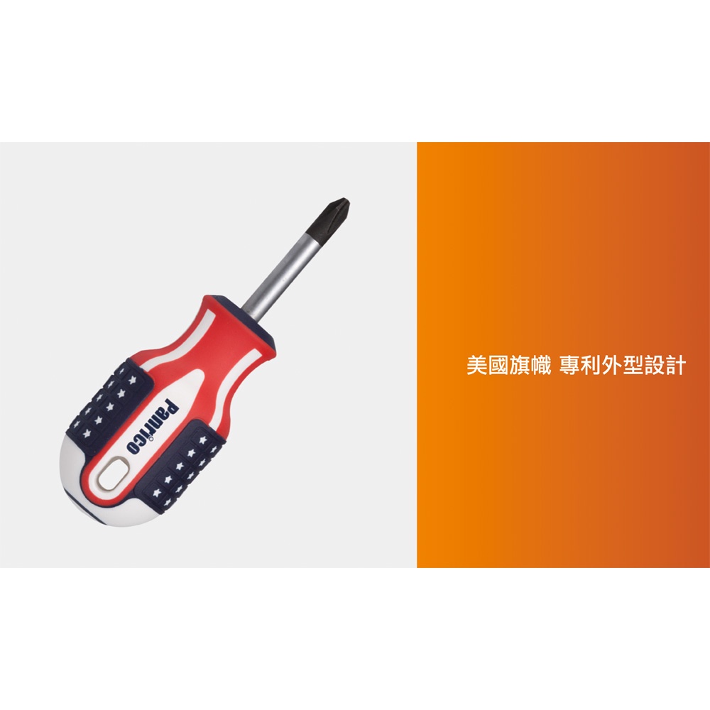 產品介紹 台灣製造優良外銷專業級美國旗十字螺絲起子(螺絲批/螺絲刀/螺絲旋具),用以旋緊或旋鬆螺絲的手工具。 產品特性: 專業級美國旗十字螺絲起子(螺絲批,螺絲刀,螺絲旋具) 短小精幹38mm長度,適用於窄小空間 加粗握柄,讓您施力更輕鬆 SVCM+V特殊合金鋼起子頭 美國旗+葫蘆造型之握柄,讓您視覺及握感更舒適 起子頭附磁性,吸附螺絲更方便 產品規格: 產品型號:FM56-20382 螺絲起子長度38mm (不含握柄), 十字#2 材質:SVCM+V,手把:PP+TPV 產地: 台灣 美國旗十字螺絲起子*1