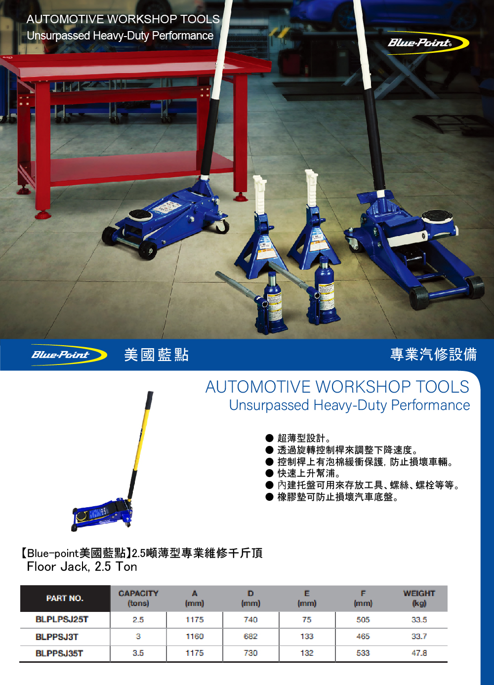 ● 最大負重: 2.5 噸 (2500公斤)