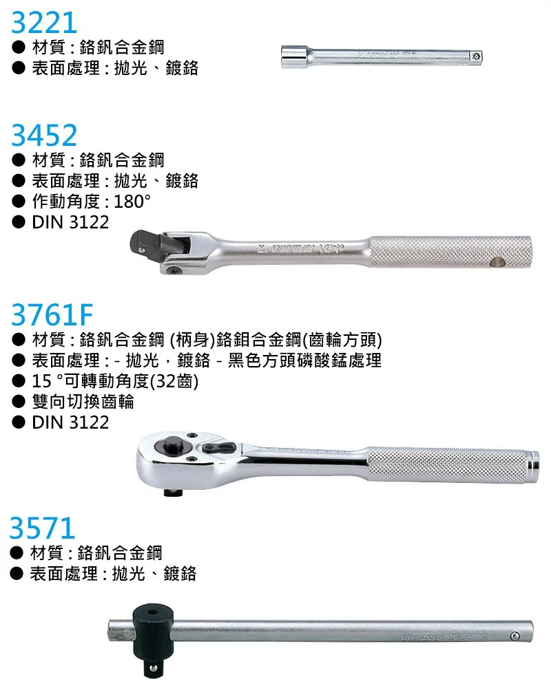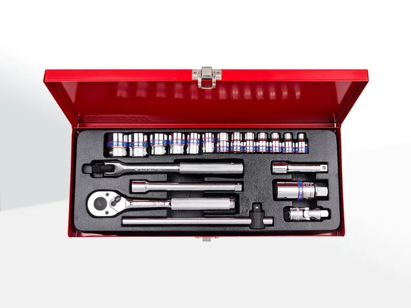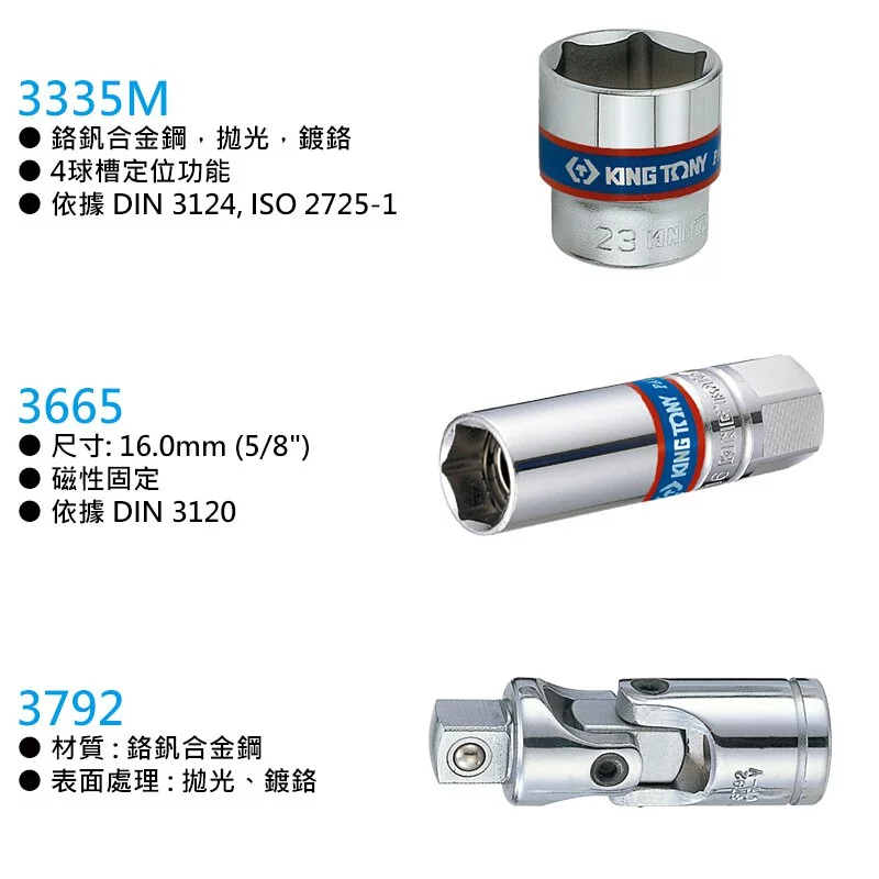 ● KING TONY 世界品牌 台灣頂級工具 ● 13件式 六角標準套筒 6~22mm ● 六角磁性火星塞套筒 ● 32齒滾花握把快速脫落棘輪扳手 ● 2件式 加長型接杆 3" & 6" L ● 1件式 板杆 ● 1件式 滑杆 ● 1件式 萬向接頭 商品貨號: