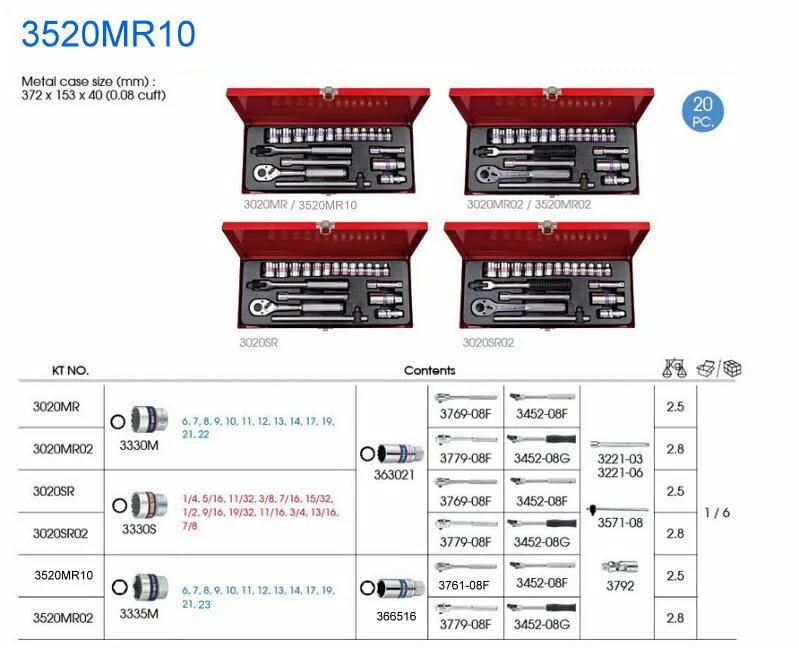 KING TONY】專業級工具20件式3/8"DR.六角套筒扳手組(無)