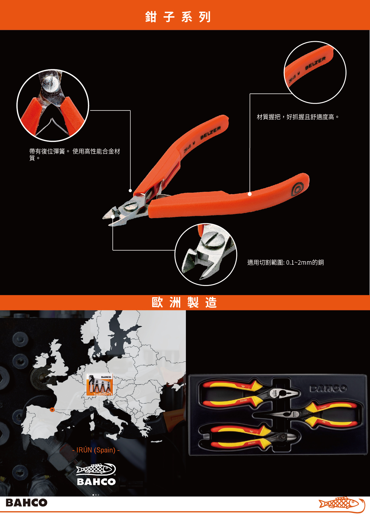BAHCO】橢圓頭微型電子斜口鉗 (微突切口) 0.4-2.0mm(長度: 125 mm 鉗口長度: 16 mm 重量: 88 g 剪切能力: Φ0.4-2.0 mm)