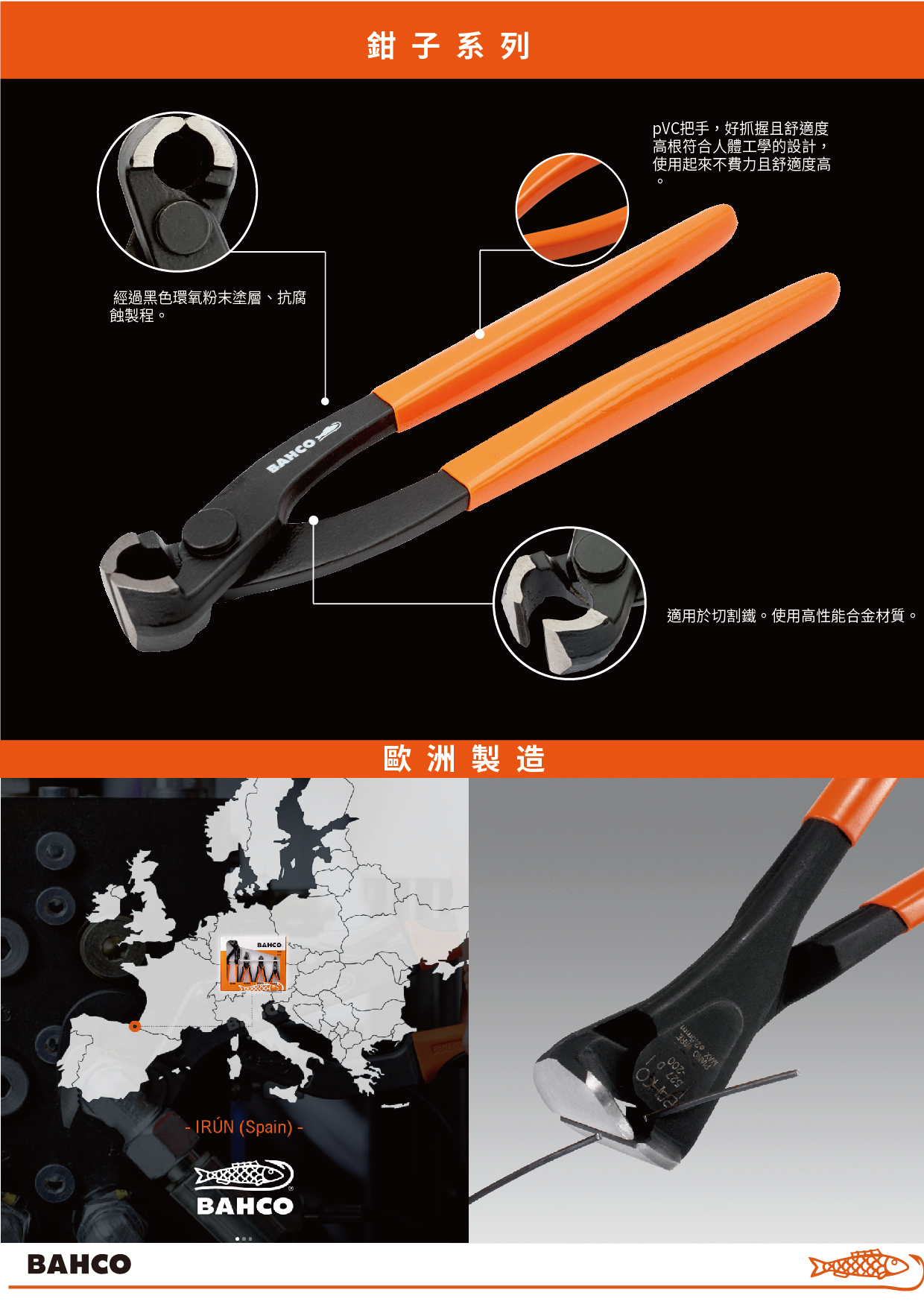 BAHCO】省力虎頭鉗/園藝鉗 (PVC握把) 220mm(無)