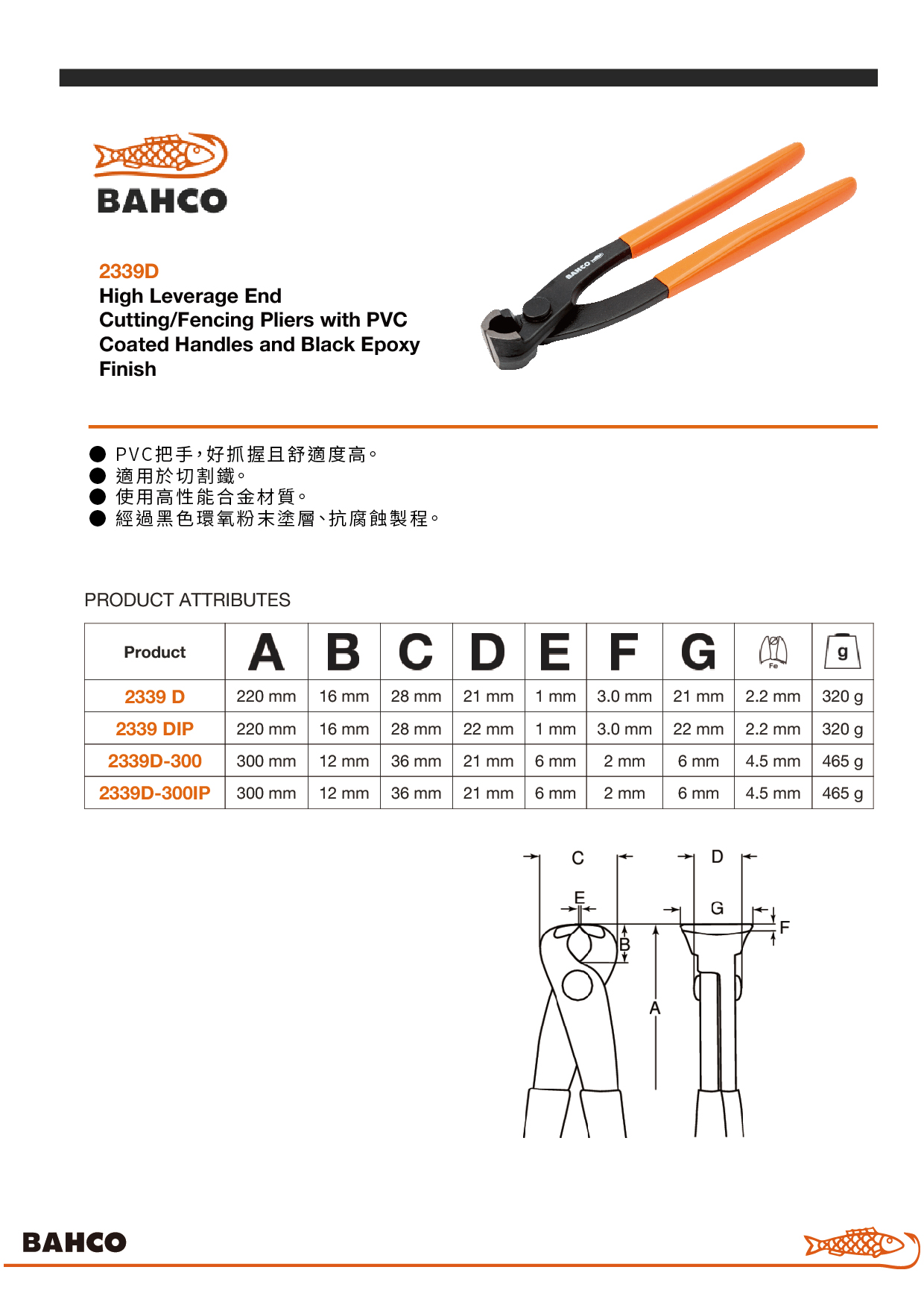 PVC握把舒適好抓 適合切割鐵線 高性能合金材質 黑色環氧粉末塗層 鉗長220毫米