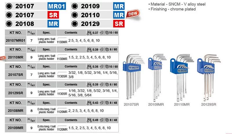 ● 8件式 特長型球頭六角扳手 2~10 mm