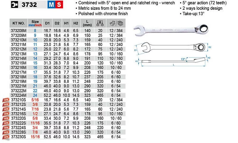 ● 13°棘輪端