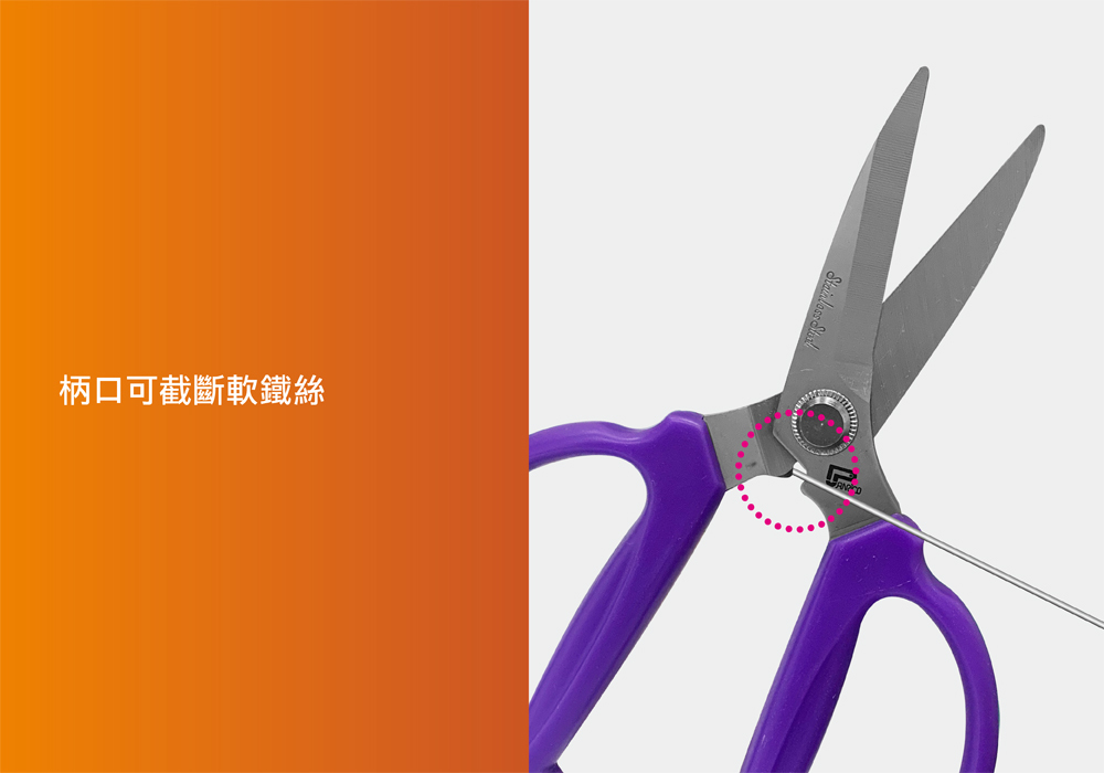 不鏽鋼刀刃,堅韌、耐用、精準刃刃柄部之柄口可裁斷軟鐵絲手握曲線設計,握感舒適