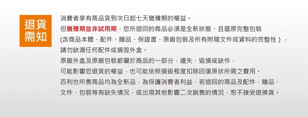 - 退貨&注意事項
