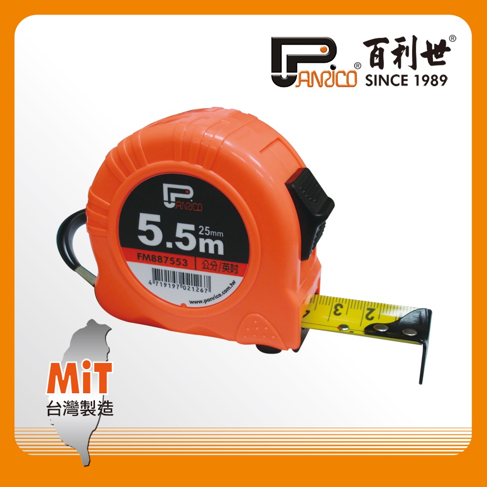 公分/英寸捲尺的尺面為鋼捲尺,分為上下兩部份,含英吋及公分標示