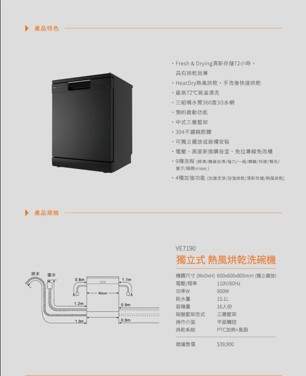 機體尺寸(寬x深x高,含上蓋):W600xD600xH805 mm