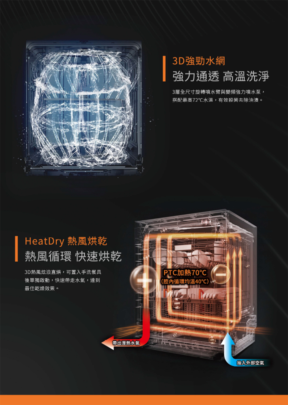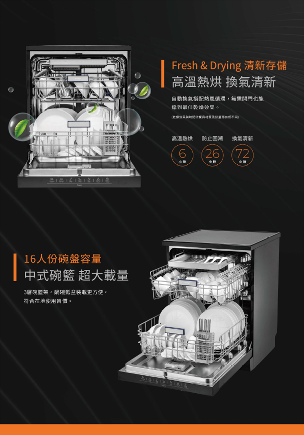 4種加強功能:加速洗淨/加強烘乾/清新存儲/熱風烘乾