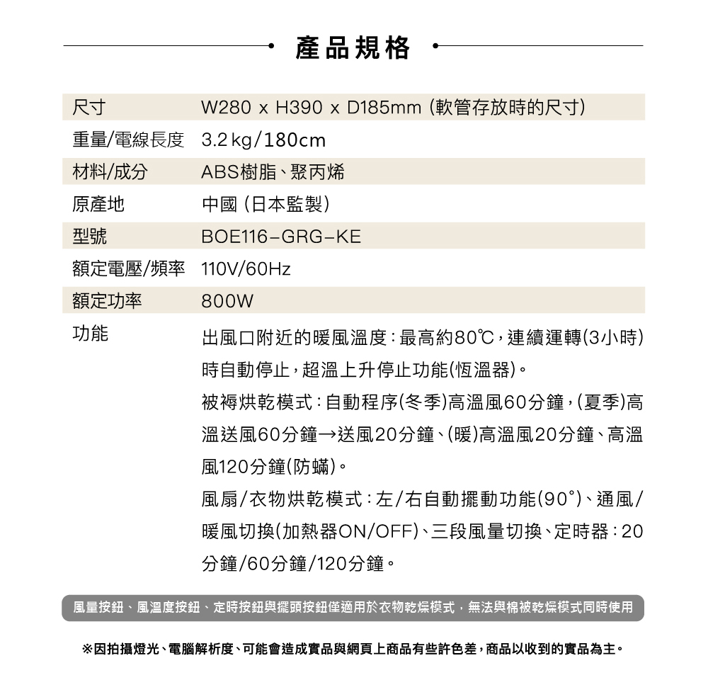 暖風溫度:出風口附近的暖風溫度,最高約80度