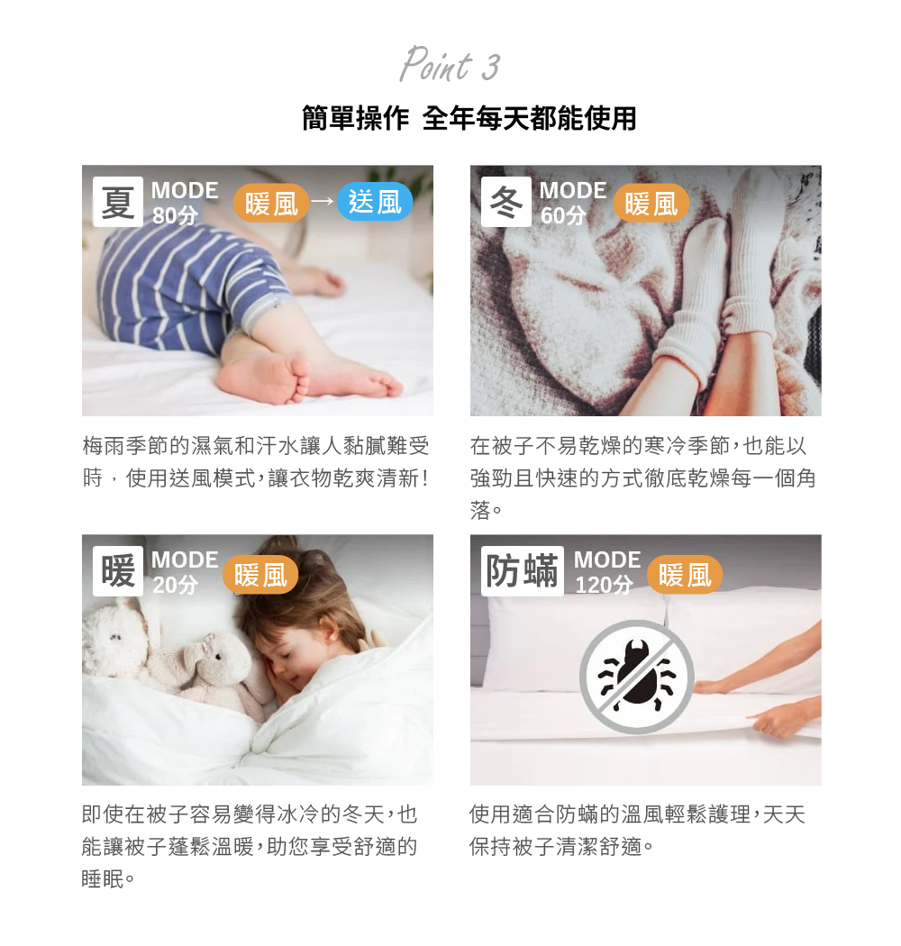 防蟎:高溫風120分鐘。