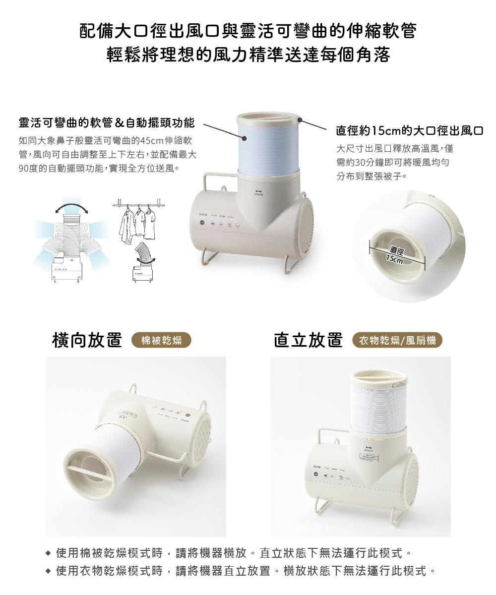 🔸小提醒:軟管搖擺功能,僅使用【衣物烘乾模式】時可用。