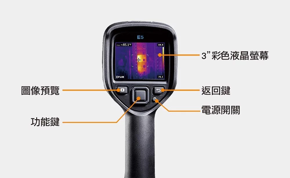 ● 紅外線熱影像儀,簡易導航鍵就能在螢幕上操作設定熱影像模式及測量工具