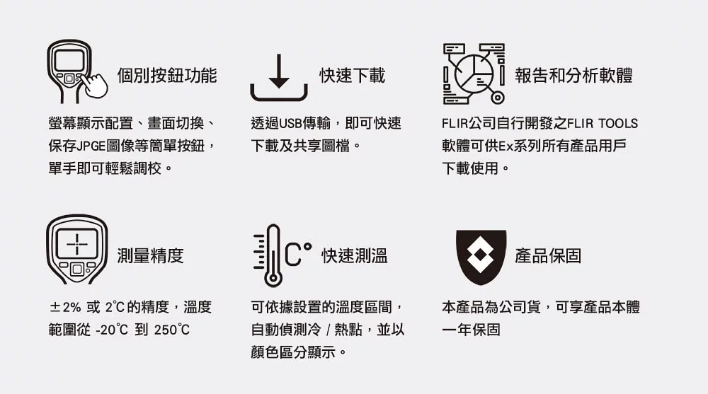 ● 熱顯像儀超輕巧 (1.2lb / .0575kg),2公尺防摔
