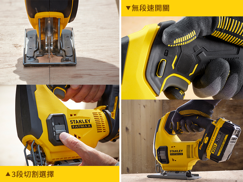 ● 無段速開關,能精準的控制切割速度
