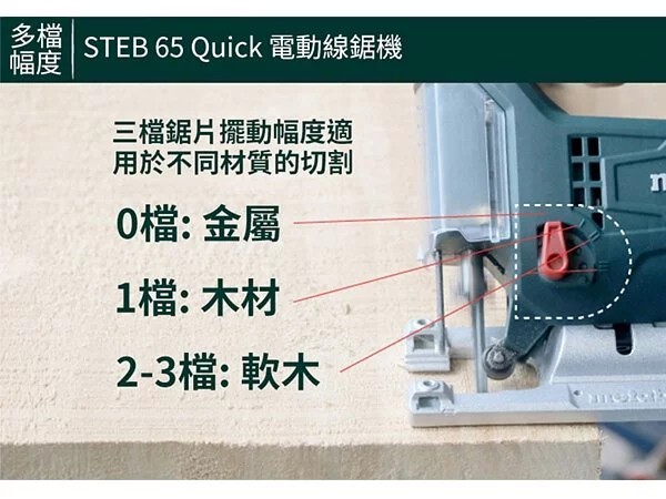 切割深度: 木材65mm / 金屬18mm / 鋼材6mm