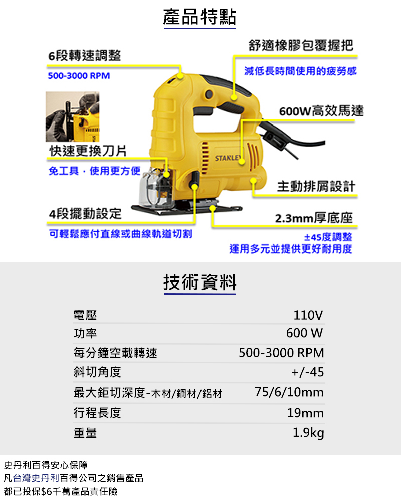 ● 4段擺動設定、可輕鬆應付直線或曲線軌道切割。
