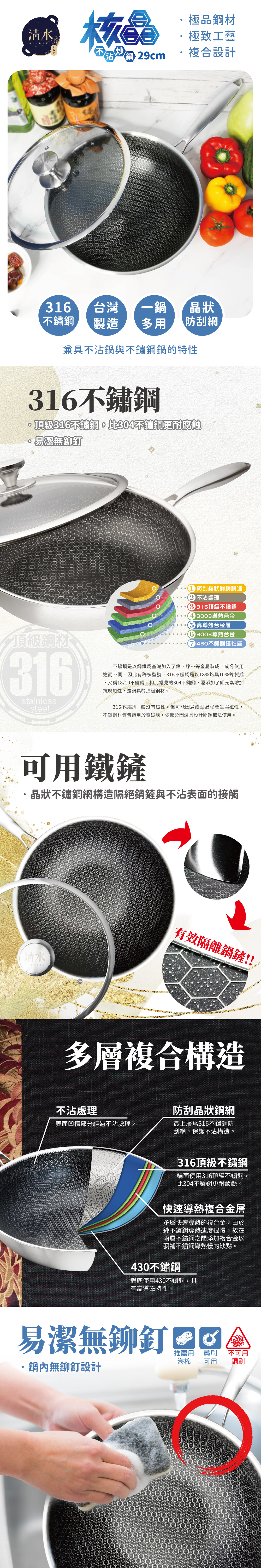 ※鍋內為316優質不鏽鋼製造,表層不沾處理