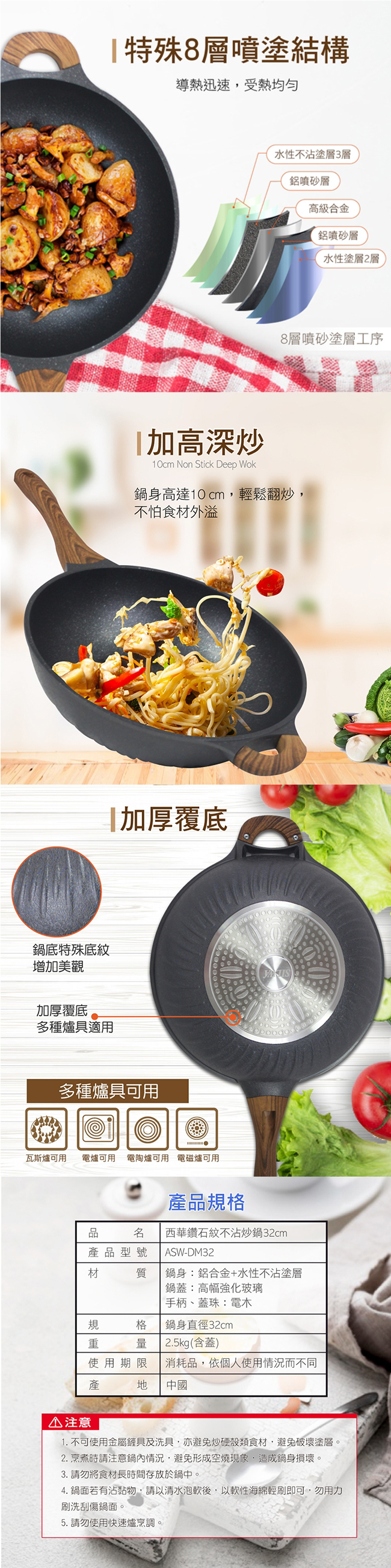 警告標語:請勿使用鐵鏟及堅硬物體敲擊鍋面
