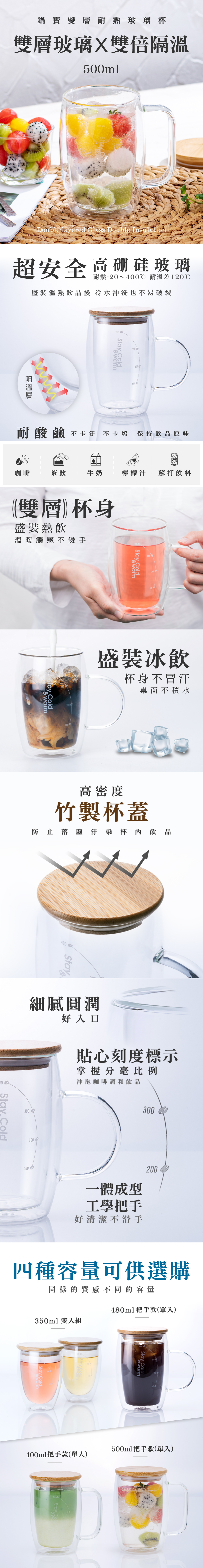 【鍋寶】雙層耐熱玻璃咖啡杯500ml 2入贈竹製杯蓋