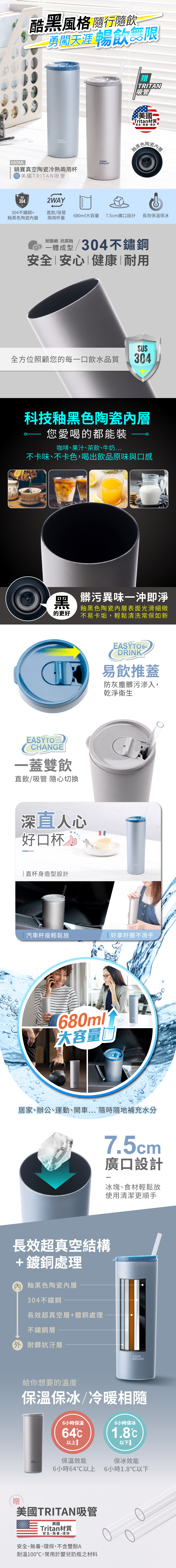 【鍋寶】真空陶瓷冷熱兩用杯680ml 亮灰 2入