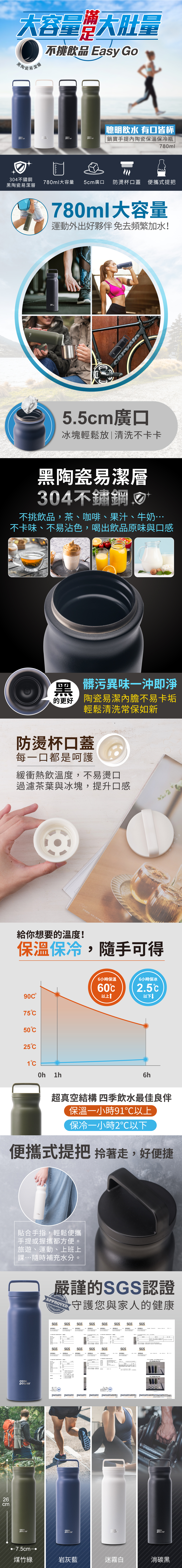 【鍋寶】超真空內塗層提把保溫瓶 780ml 岩灰藍+煤竹綠
