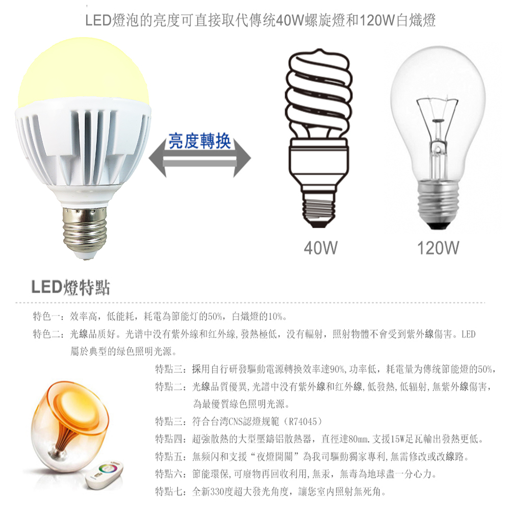 6.發光角度大於330度.比第一代更廣角<====我的天啊!