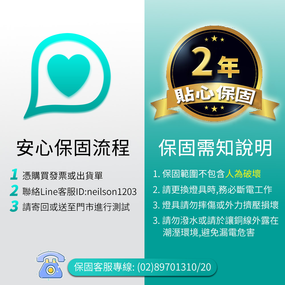 3.真正二年換新(非人為損壞正常使用下,不可用於調光燈具&密閉燈具及環境潮濕)