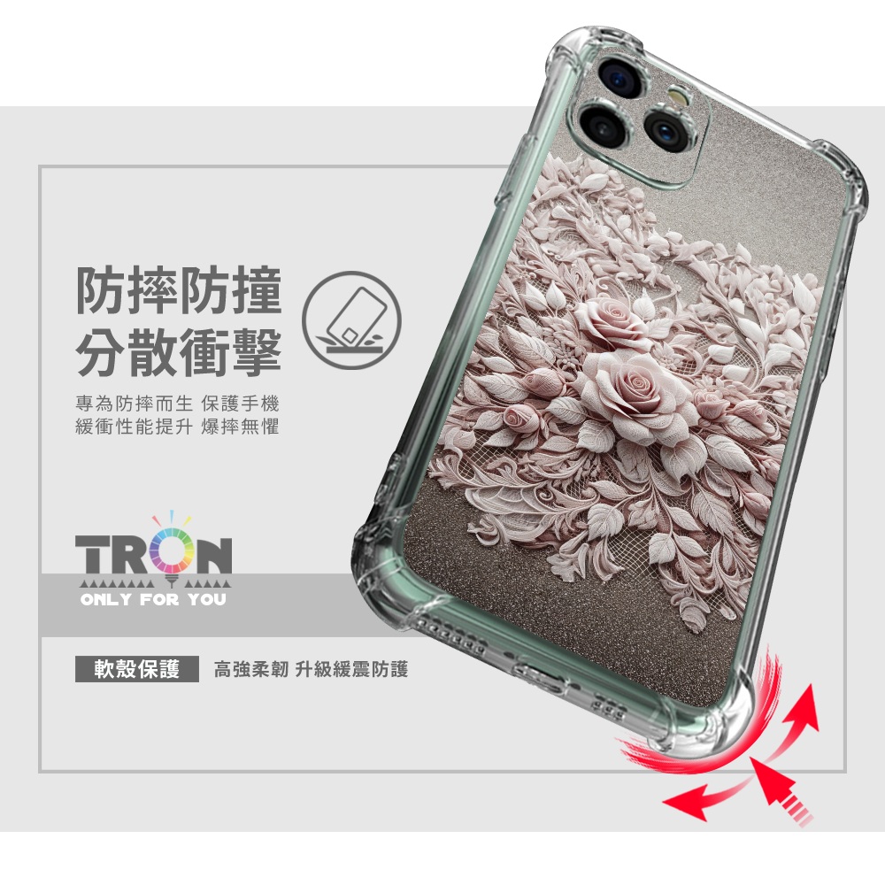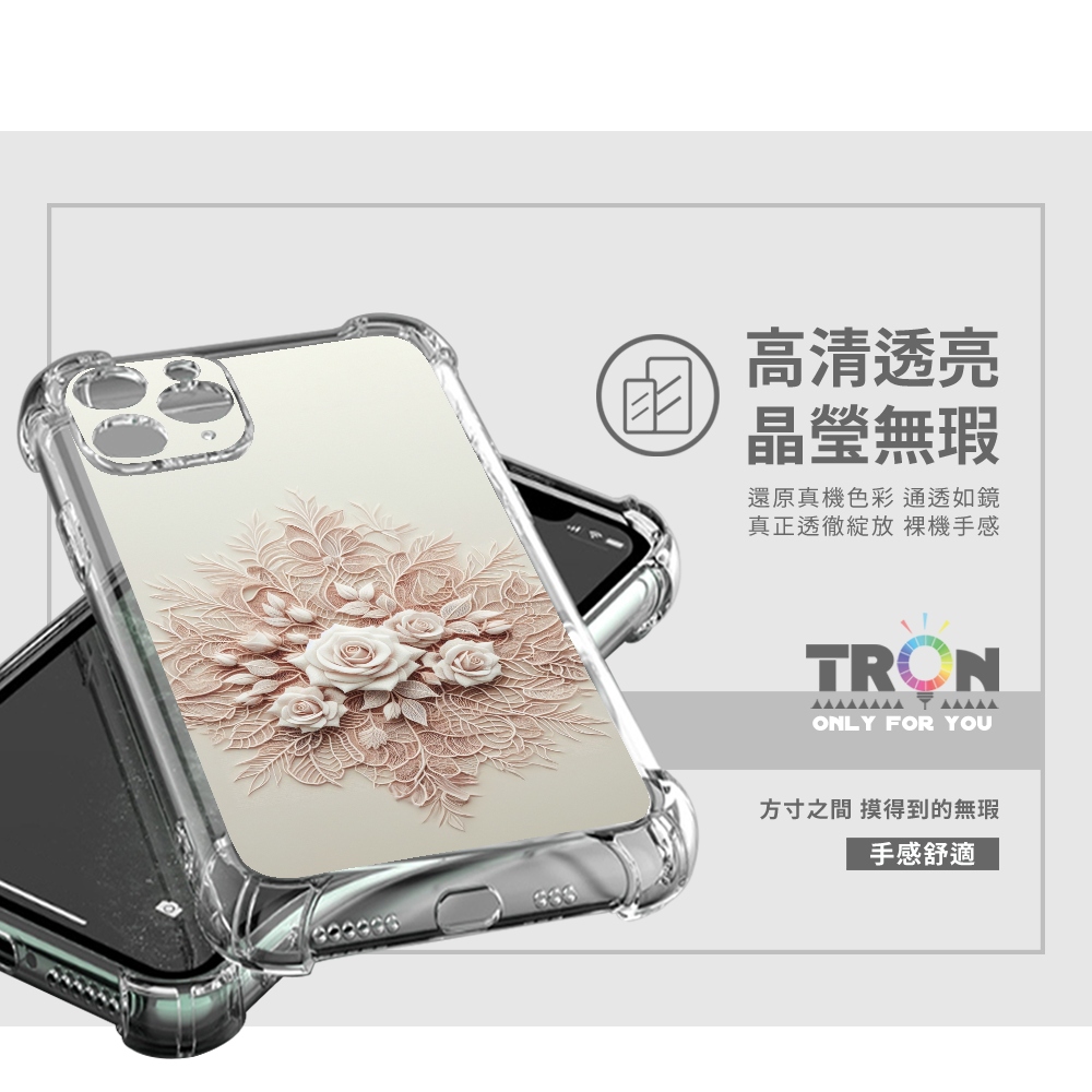 TRON 創】iPhone 11/ Pro/ Pro Max 粉色蕾絲玫瑰系列 四角防摔 軟殼 手機殼(1入)
