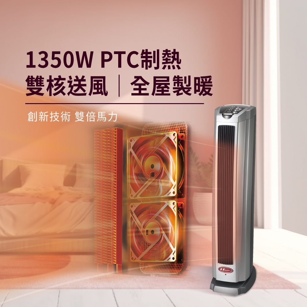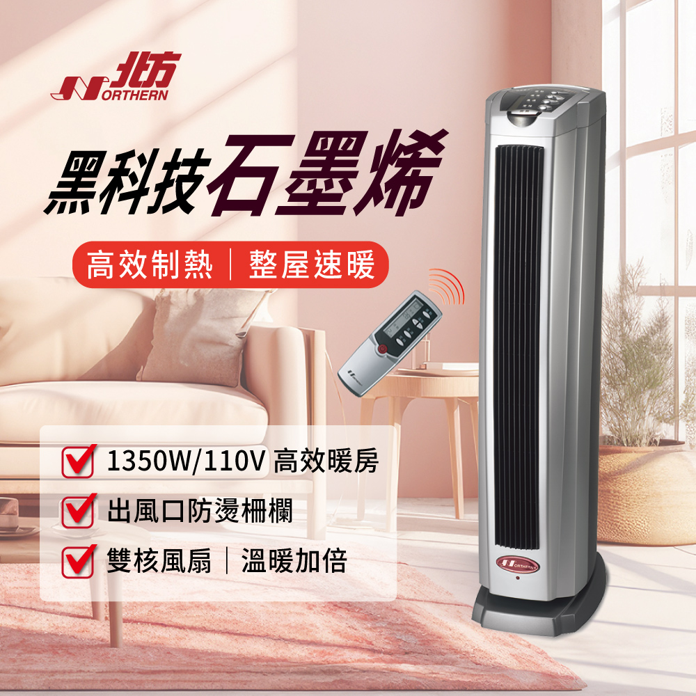 【NORTHERN 北方】石墨烯陶瓷遙控電暖器(PTC888TRG(26.7×20×77.5CM1台裝))