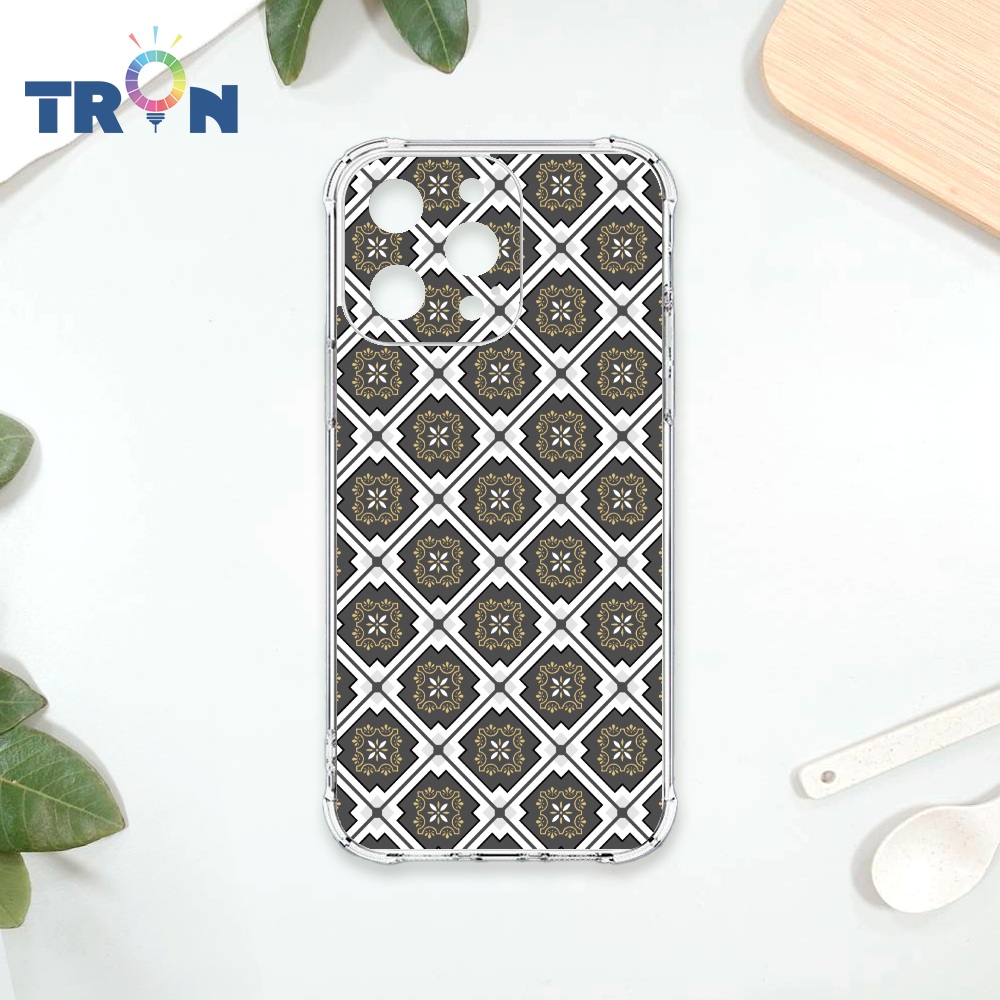 TRON 創】iPhone 15/ Plus/ Pro/ Pro Max 幾何復古花磚C款 四角防摔 軟殼 手機殼(1入)
