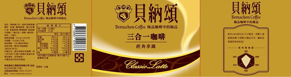 - 過敏原資訊:本產品含有牛奶及其製品/咖啡因含量:87mg±30%/份