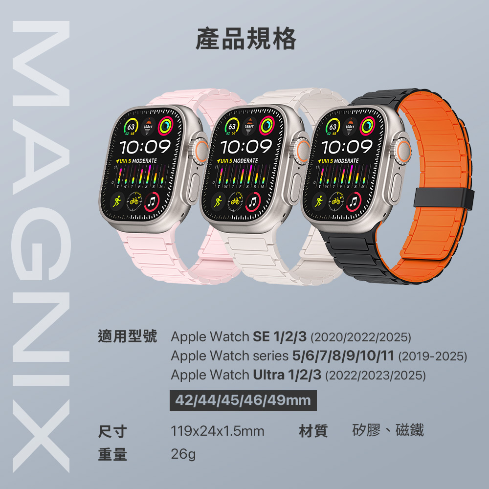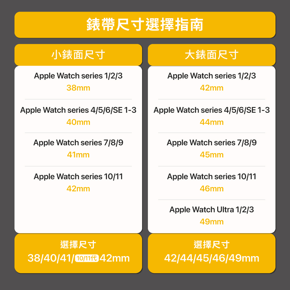 ● 適用機型:Apple Watch 1-3(42mm)/4-10/se1-2/Ultra1-2 (44/45/46/49mm)